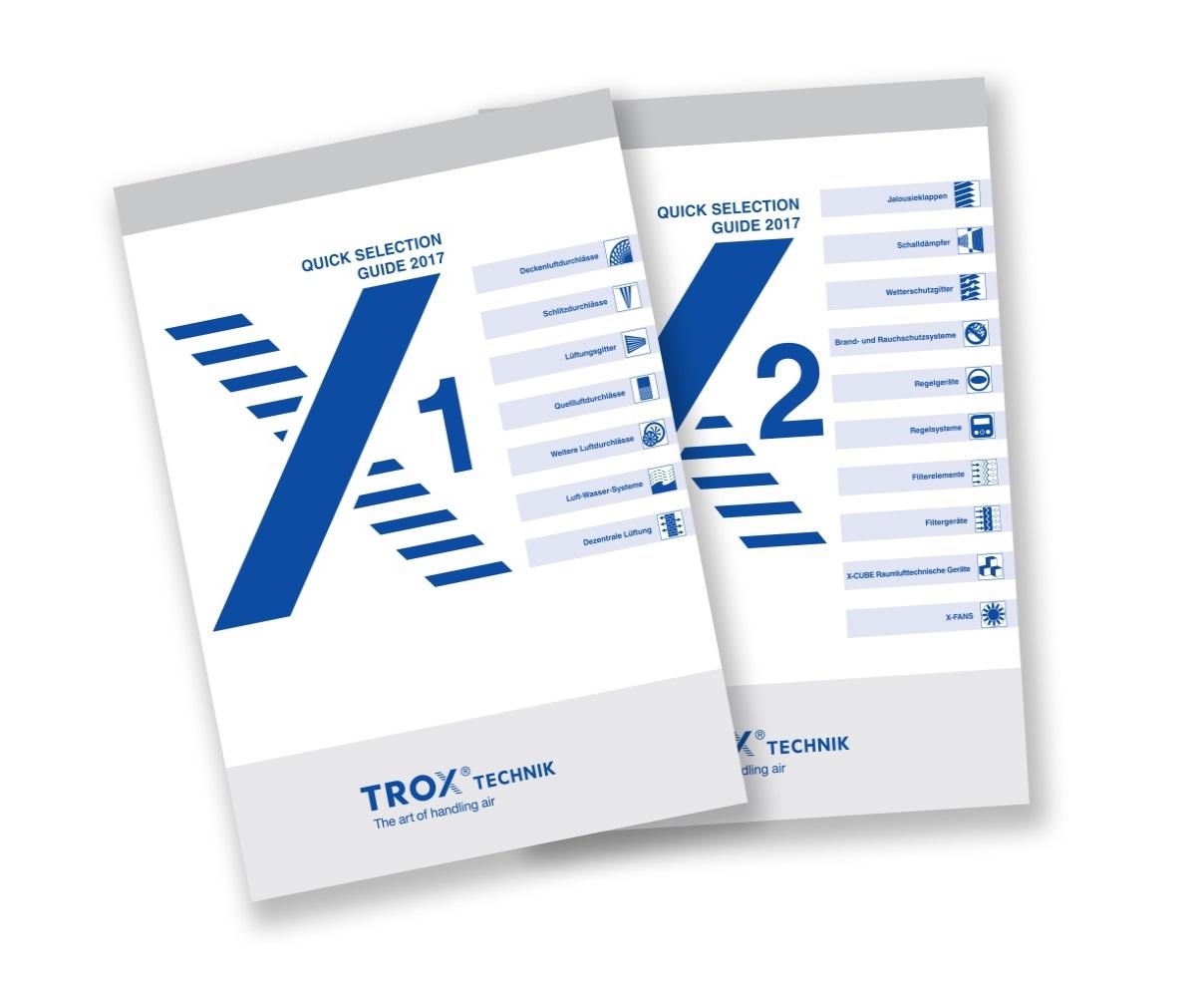 Über alle 300 TROX Produktserien, aufgeteilt in verschiedene Produktsegmente wie Luftdurchlässe, Luft-Wasser-Systeme, dezentrale Lüftung, Regelgeräte und -systeme, Brand- und Rauchschutzsysteme, Filterelemente und -geräte etc., enthält der Quick Selection Guide für eine Erstauswahl alle notwendigen Informationen. Erstmals sind auch die RLT-Geräte X-CUBE und Gebäudeventilatoren X-FANS mit dabei.